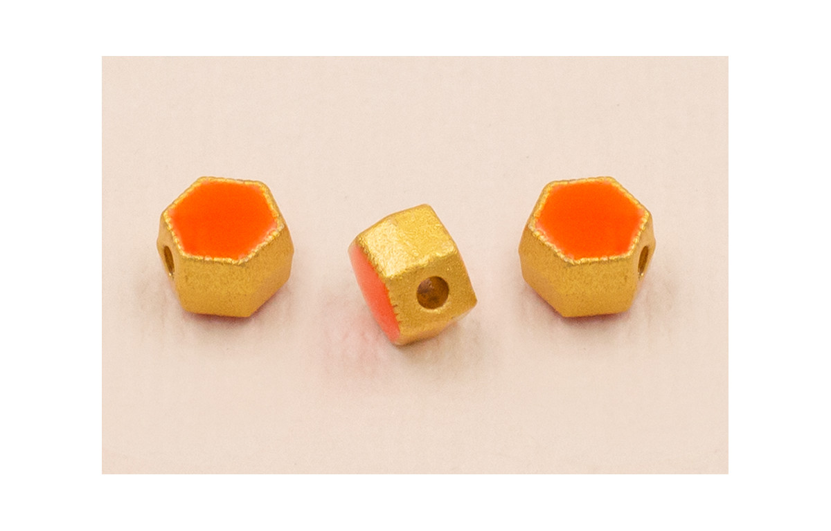 Entrepieza Hexagonal 5*5*4mm Oro Esmalte Naranja