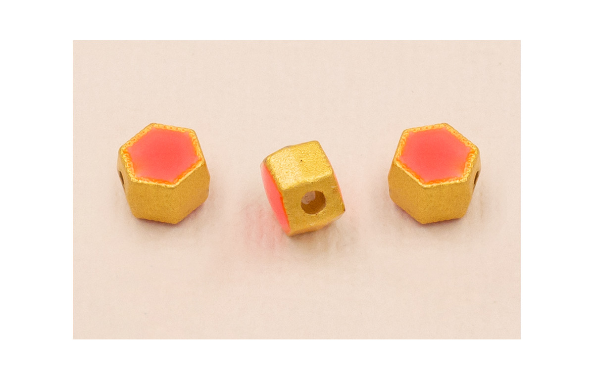 Entrepieza Hexagonal 5*5*4mm Oro Esmalte Fuxia