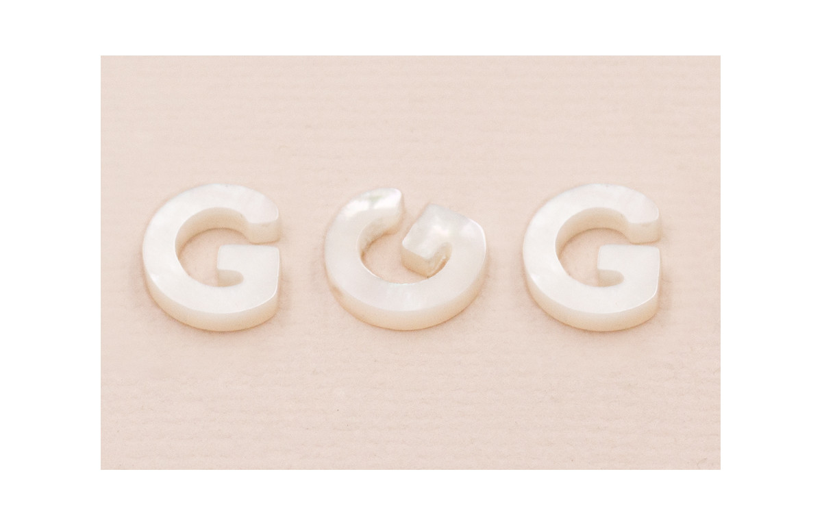 Letra Nacar G 10mm agujero horizontal superior