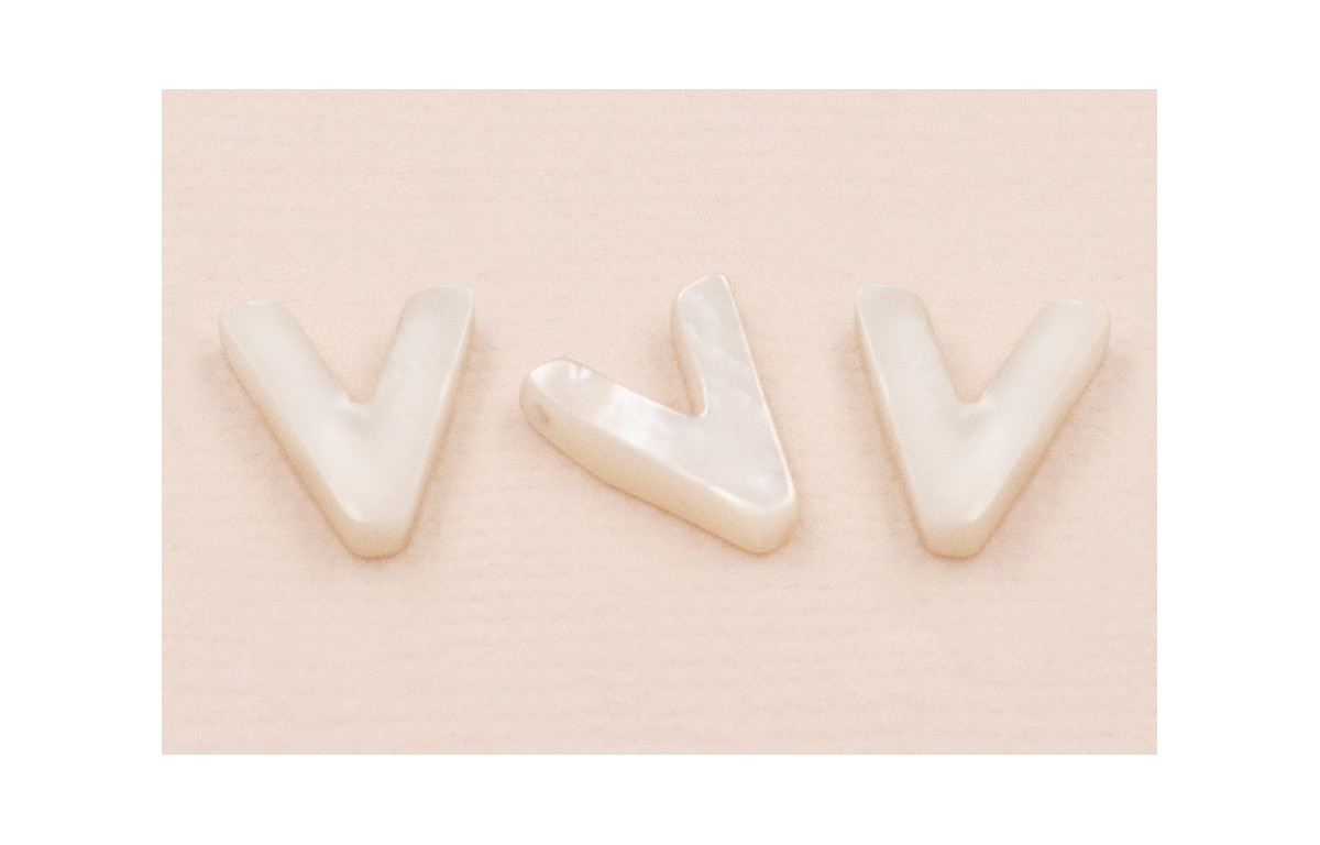 Letra Nacar V 10mm agujero horizontal superior