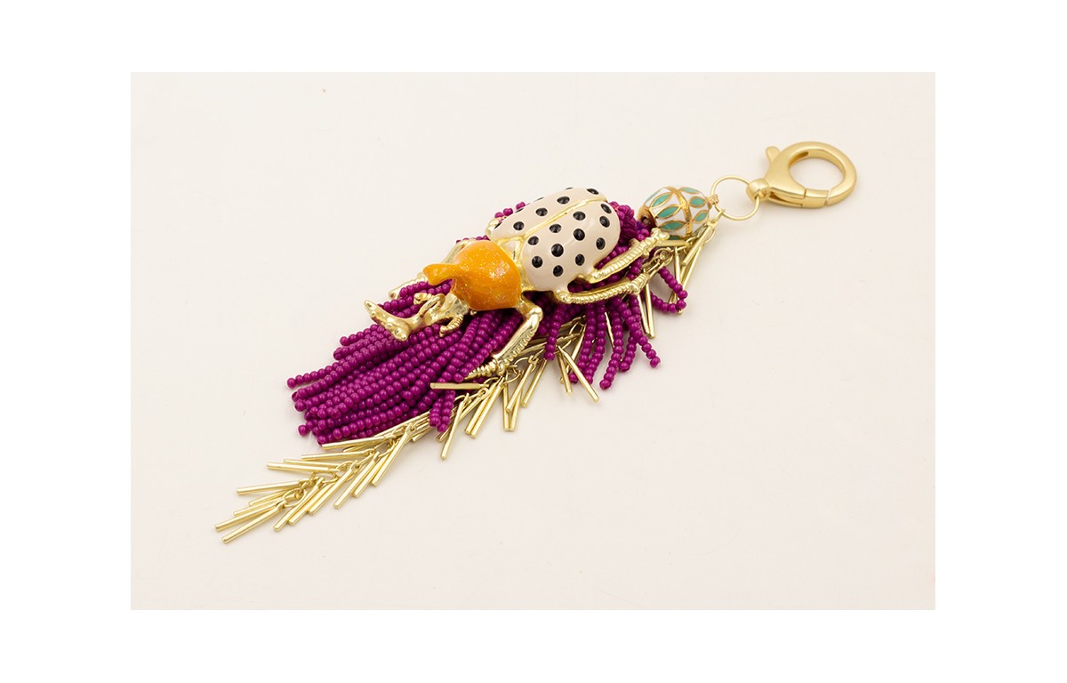 Llavero con fleco abalorio morado y escarabajo esm