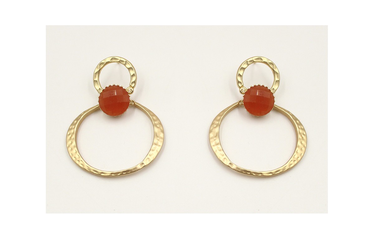 Pendientes herradura oro mate con brillo opal naranja.