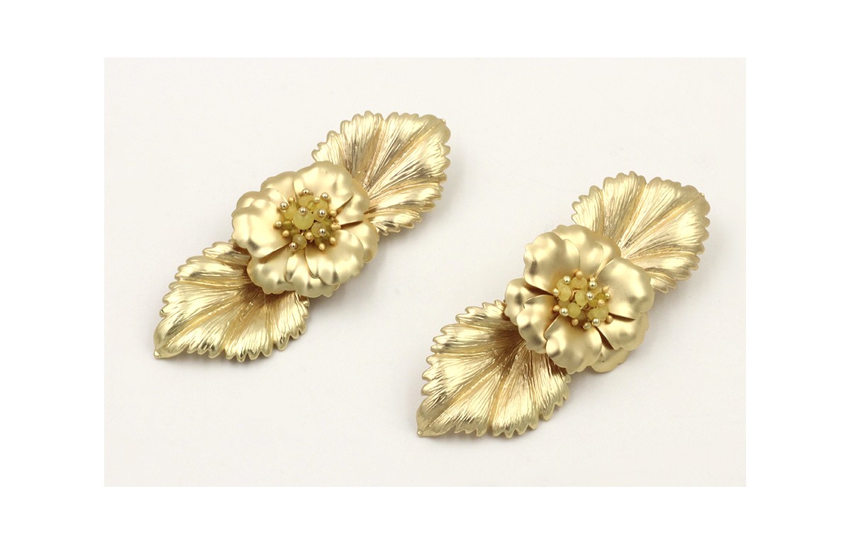 Pendientes hojas dorado mate con flor sobrepuestas
