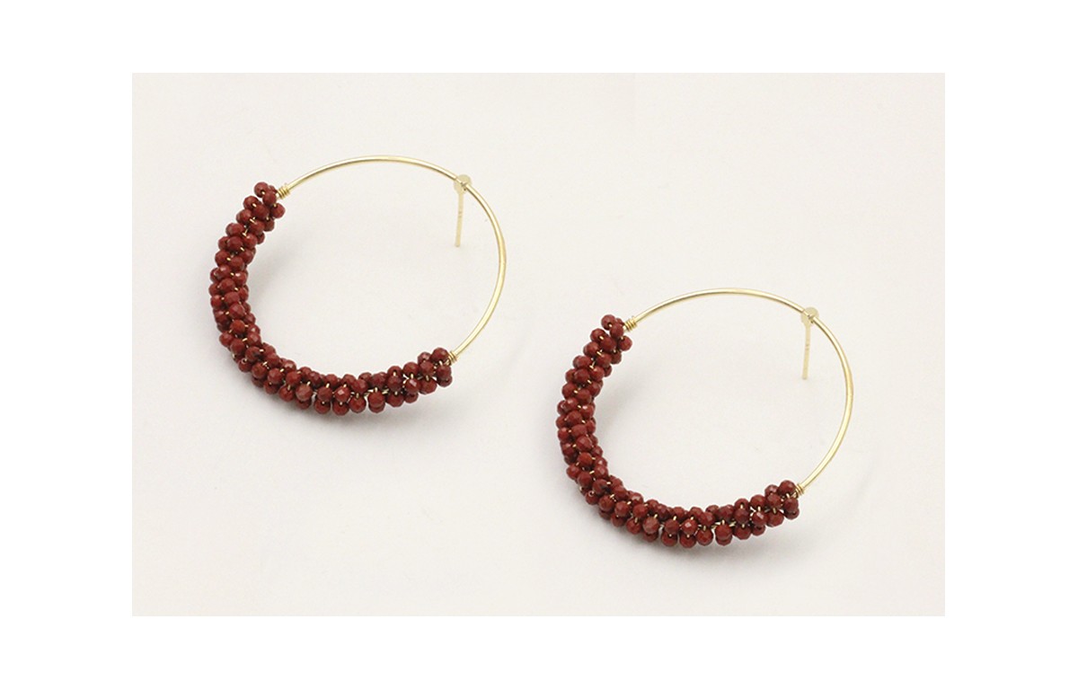 Pendientes acero inoxidable aro con perno forrado de facetadas granates.
