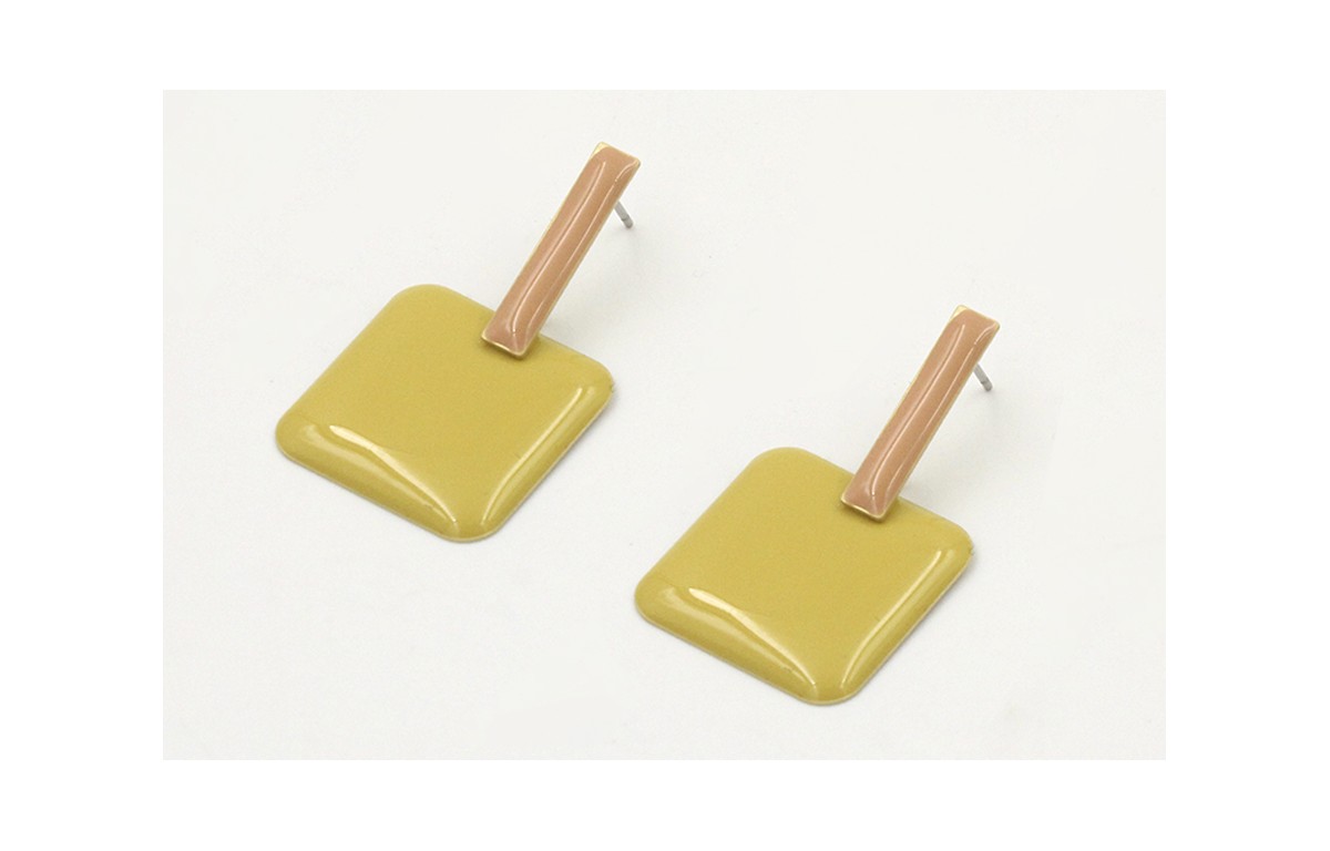 Pendientes perno listín esmlatado arena con colgante cuadrado esmaltado verde lima. Largo 4cm.