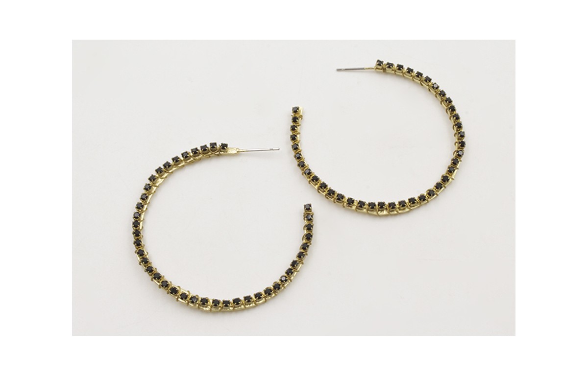 Pendientes aro plana forrado con cadena de strass negra. Largo 5cm.