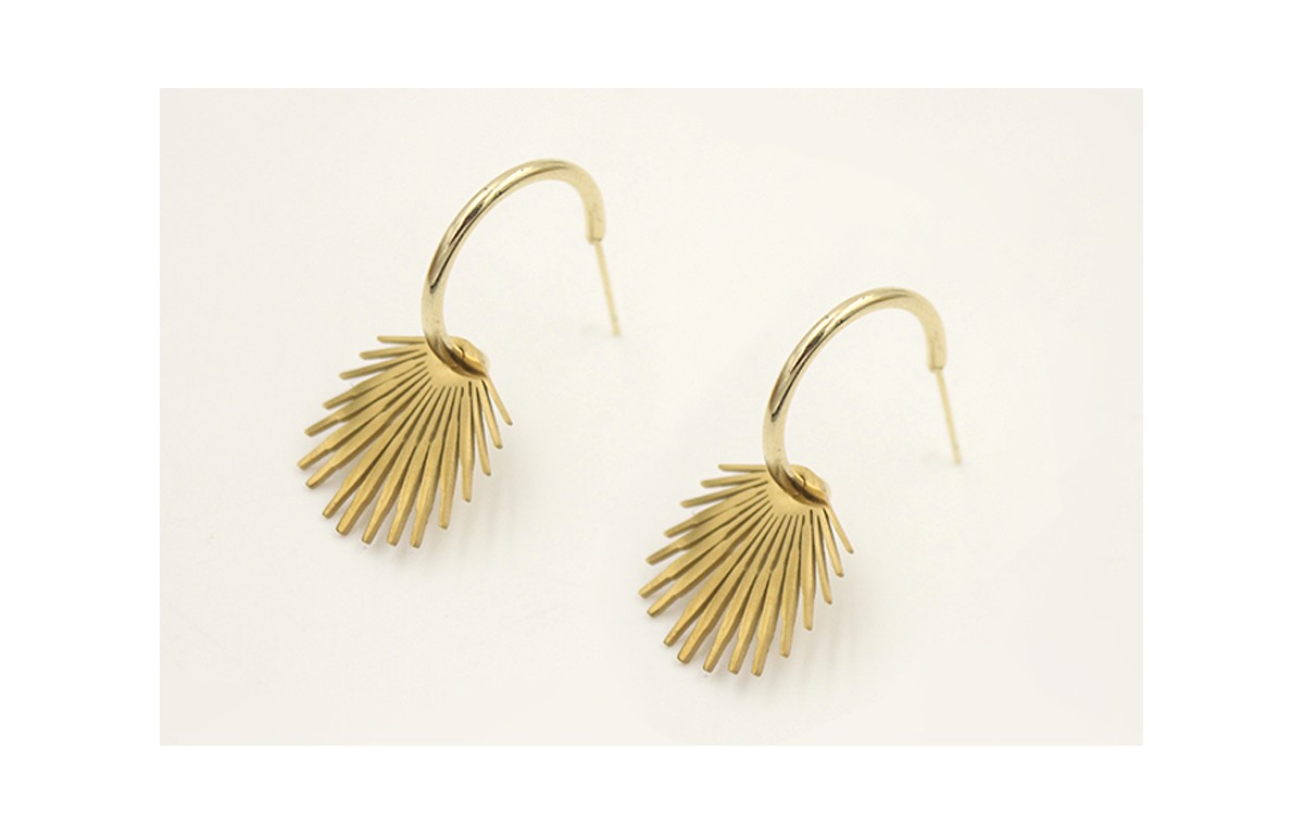 Pendinetes acero inoxidable perno semi aro con bola y colgante concha. Largo 3,5cm.
