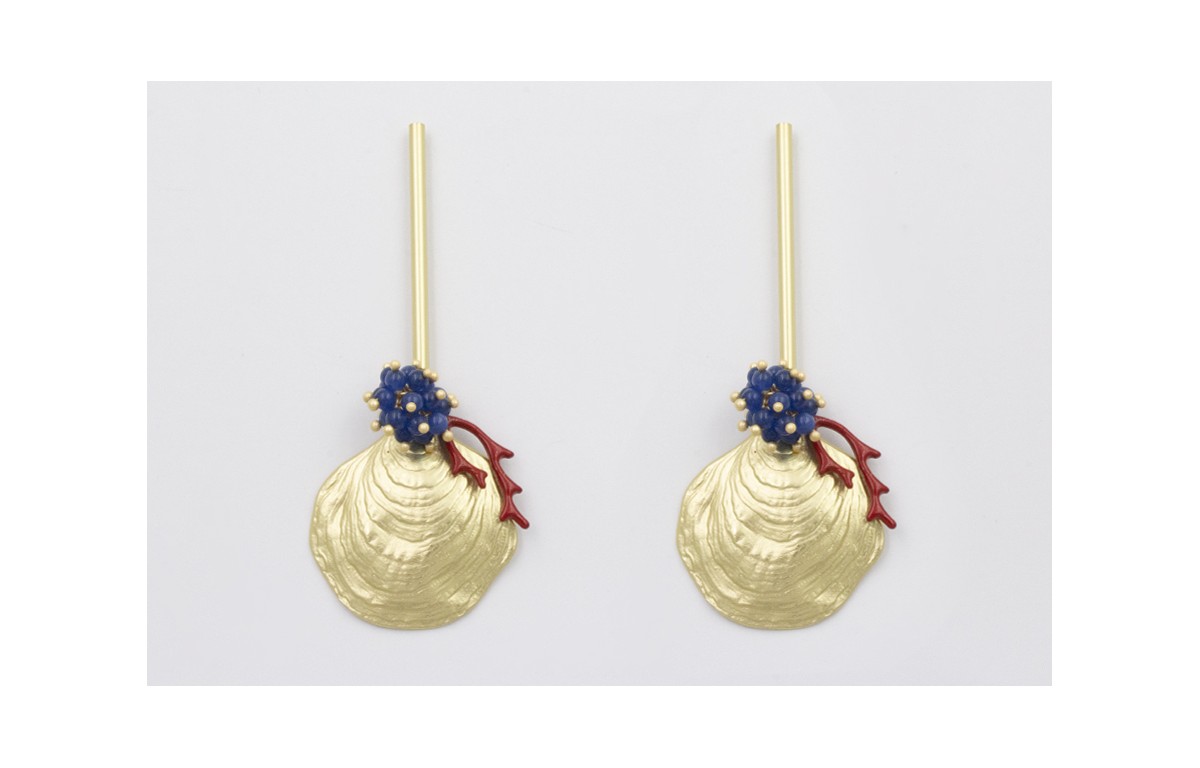Pendientes Listón , concha dorada mate, rama coral
