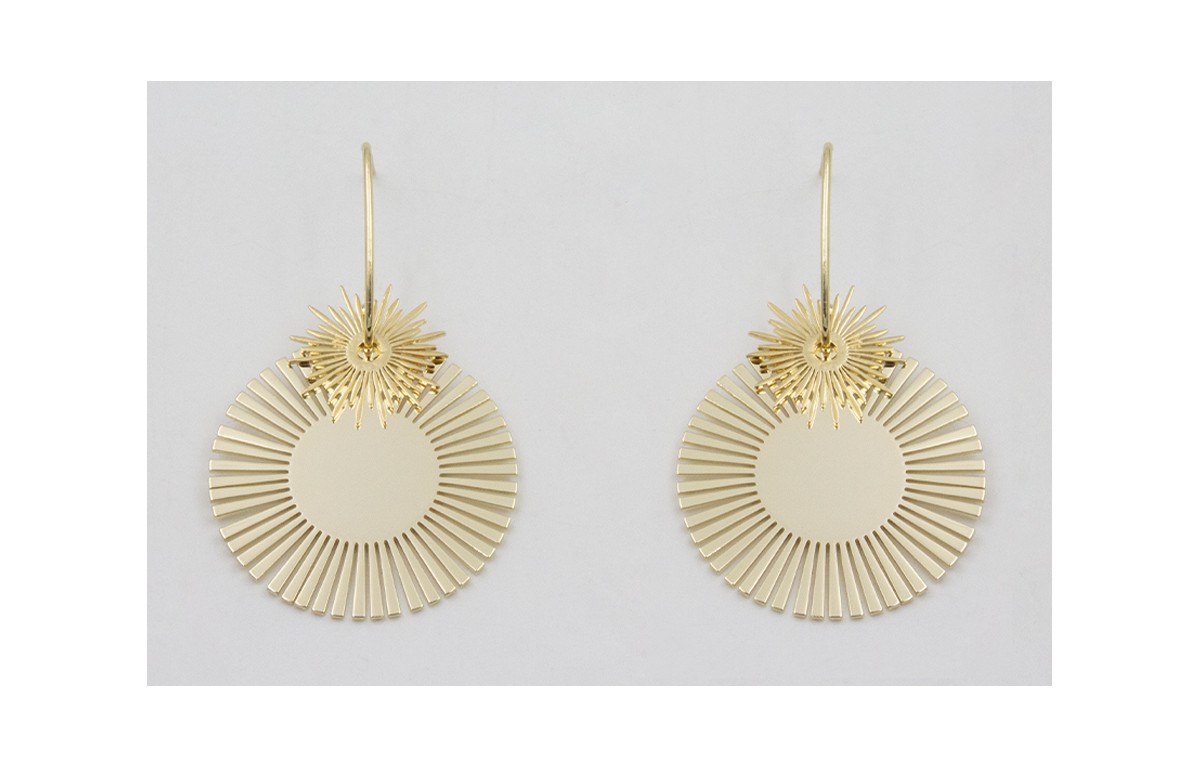 Pendientes acero inoxidable anzuelo con estrella y disco sol.