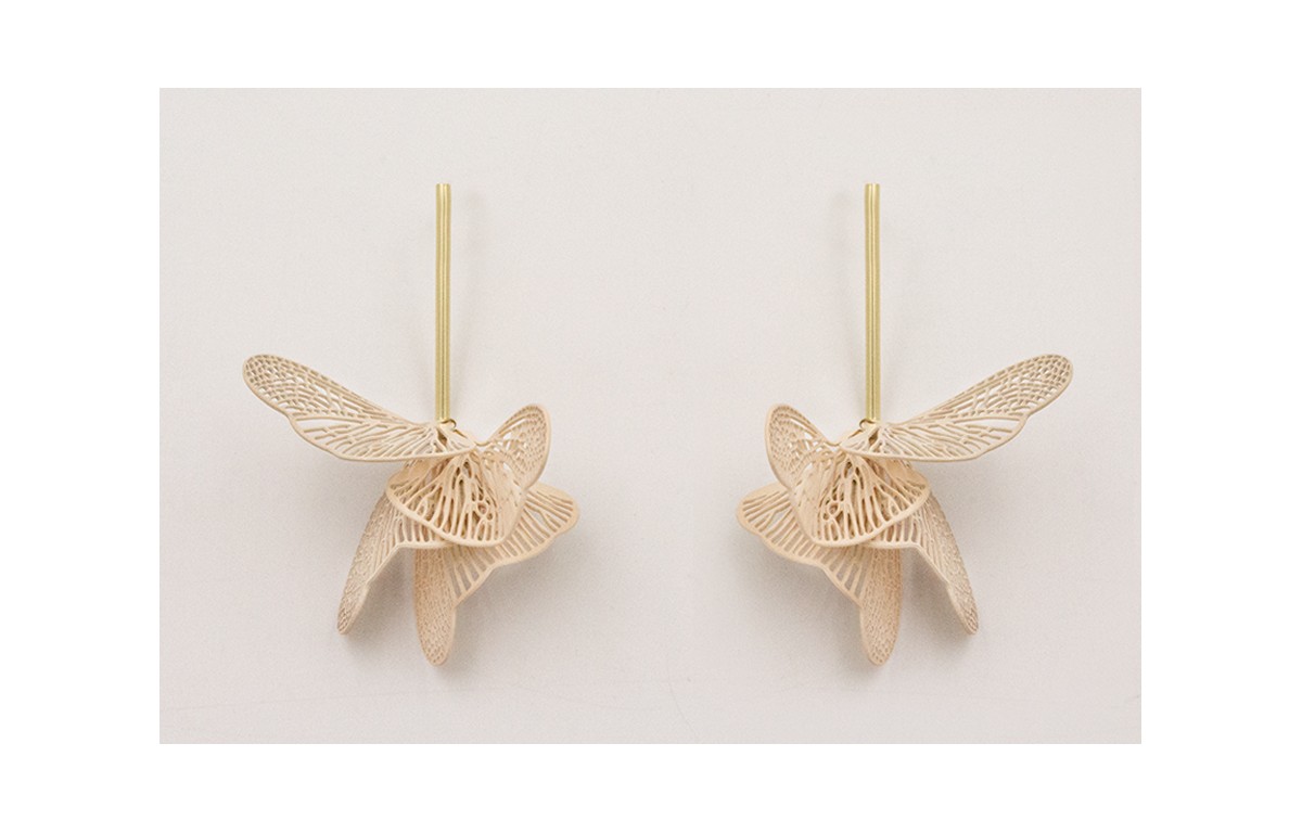 Pendientes perno pivote dorado mate con alas marip