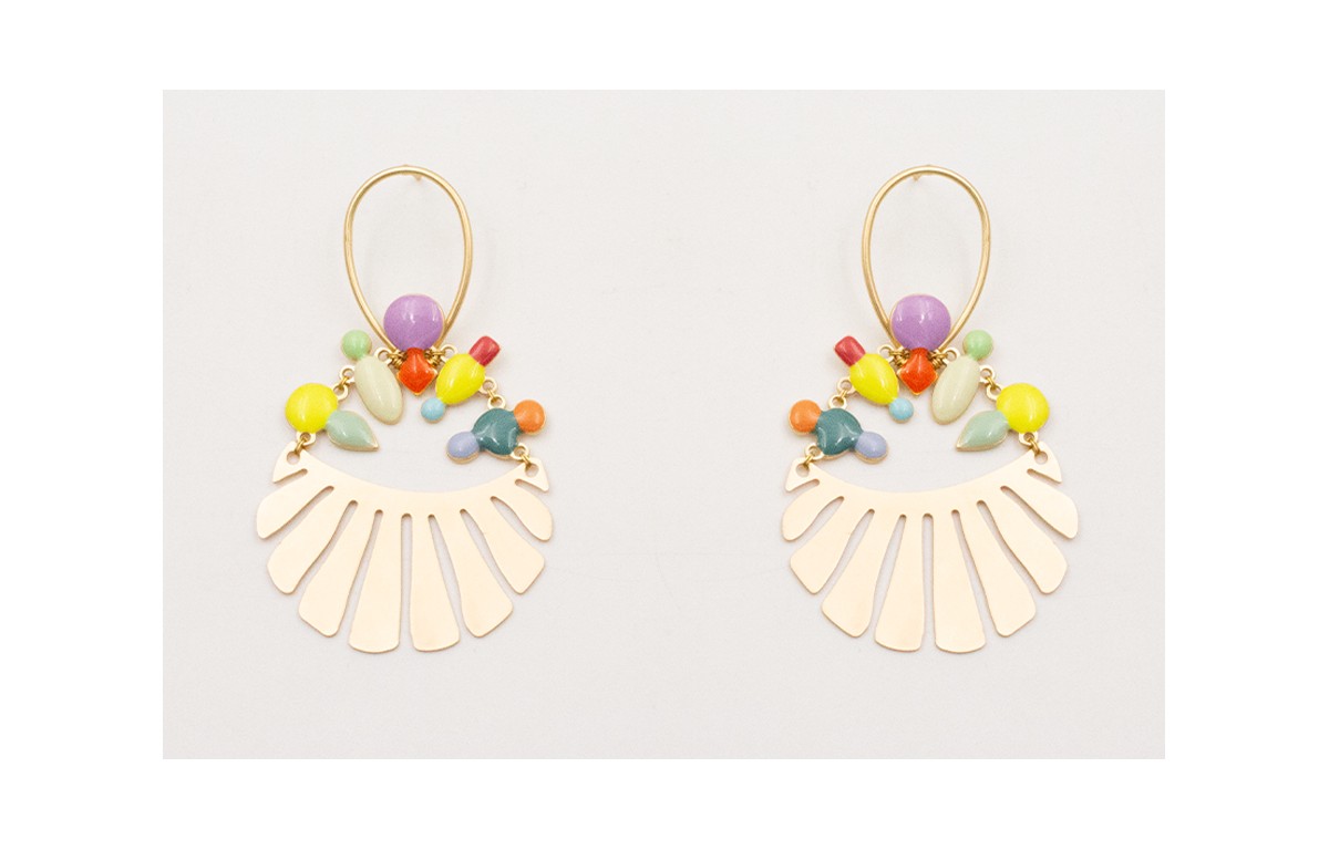 Pendientes herradura con lámina babero con esmaltitos colores cosidos.