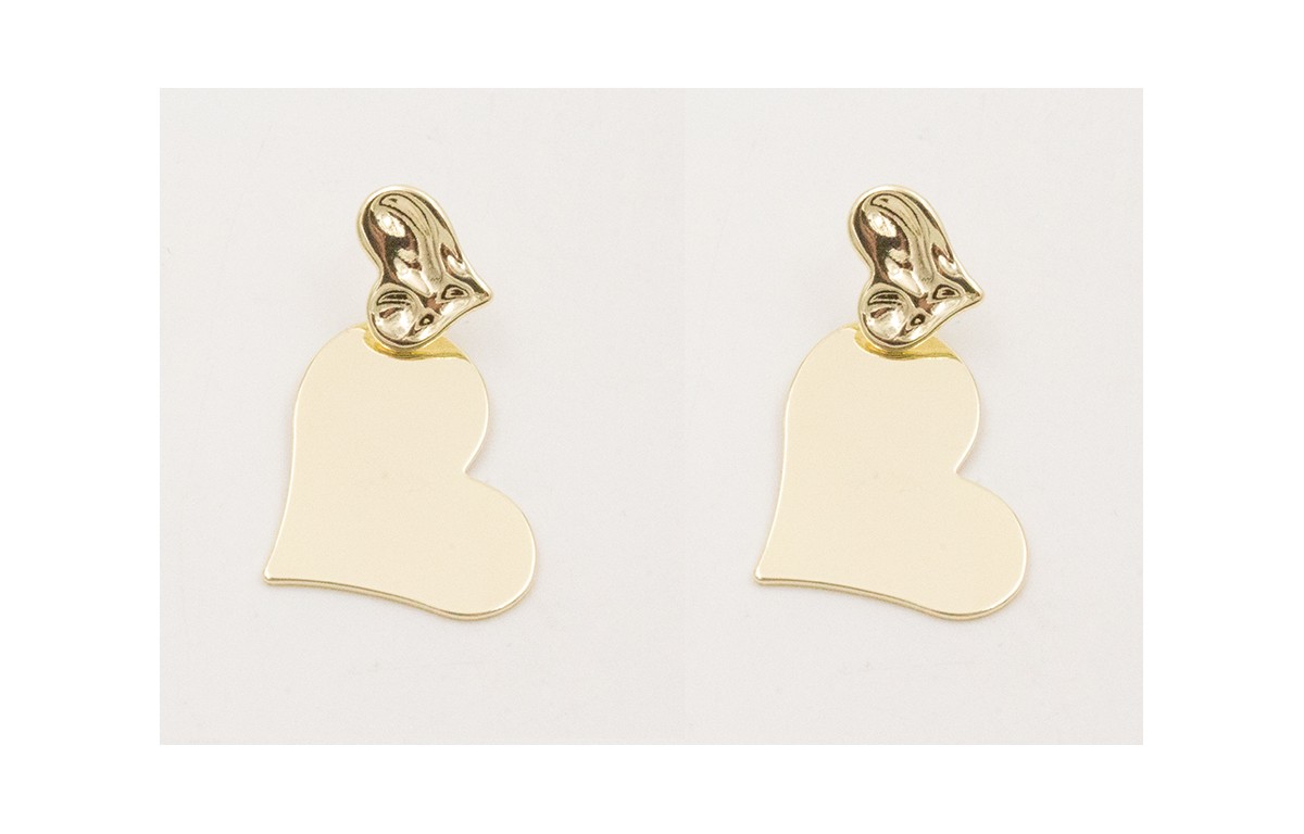 Pendientes perno corazón con colgante corazón todo dorado brillo.