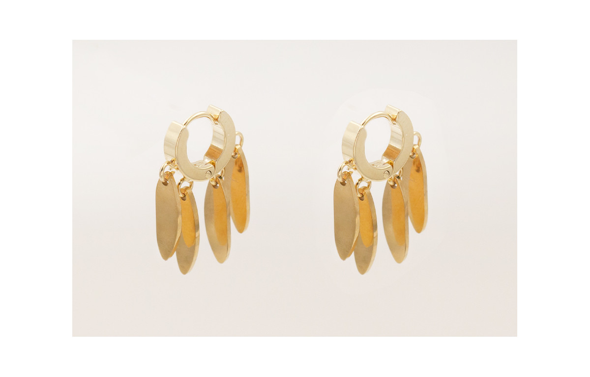 Pendientes acero inoxidable cierre aro con 4 anillas y colgante gota oro.