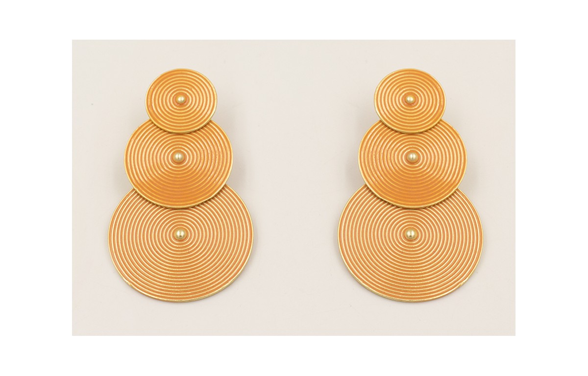 Pendientes discos rayados esmaltados ocres.