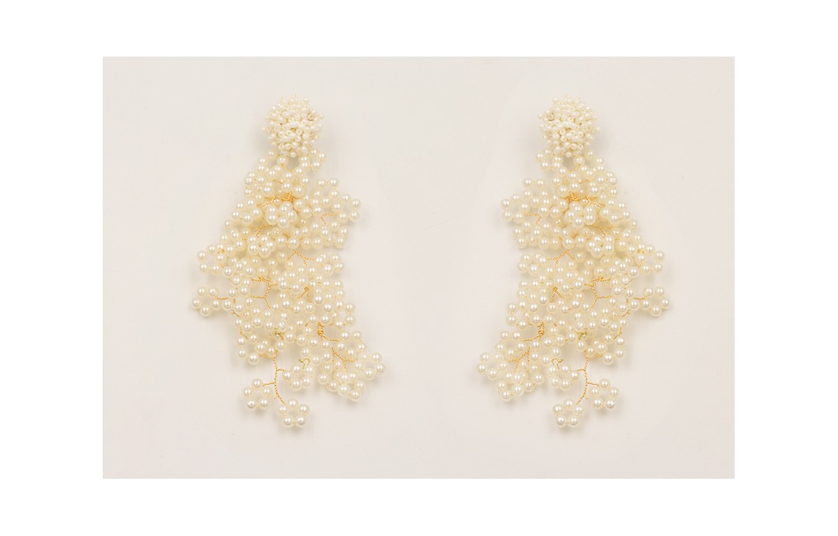 Pendientes ramas de perlas con disco abalorio engarzado perlas.
