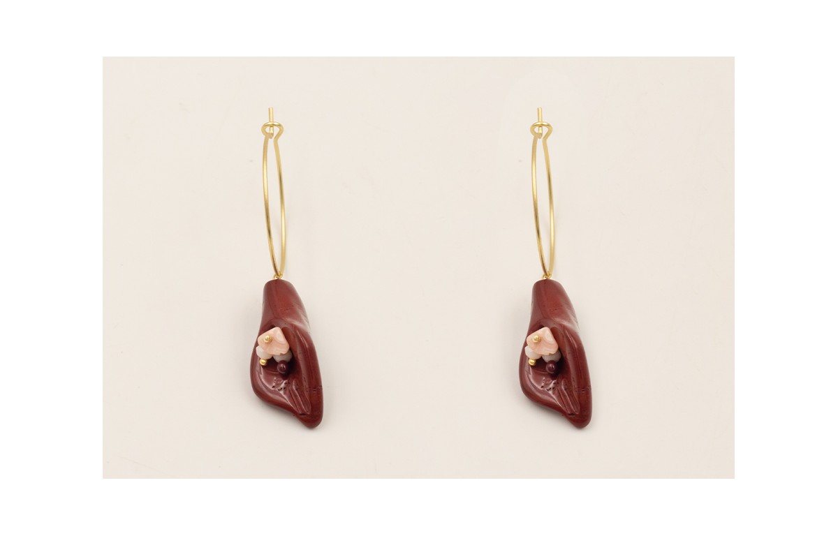 Pendientes aro mediano dorado mate con tulipán jad
