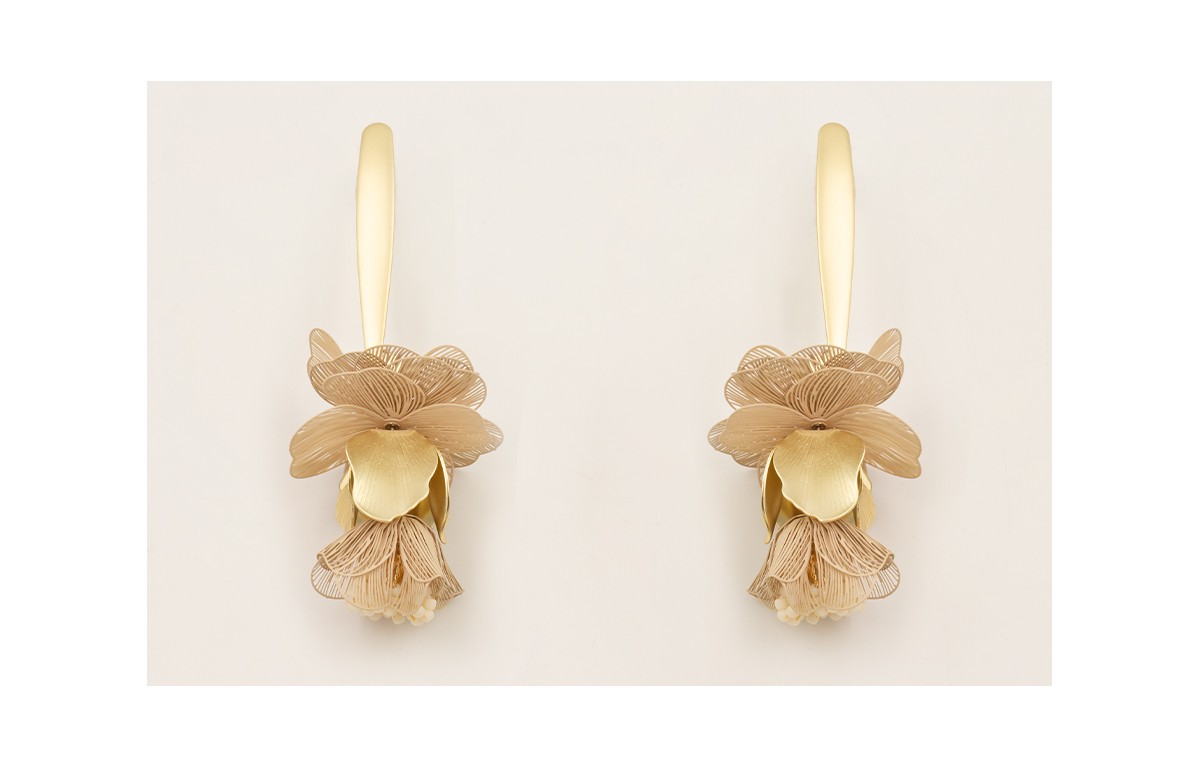 Pendientes perno daga dorada mate con flores alamb