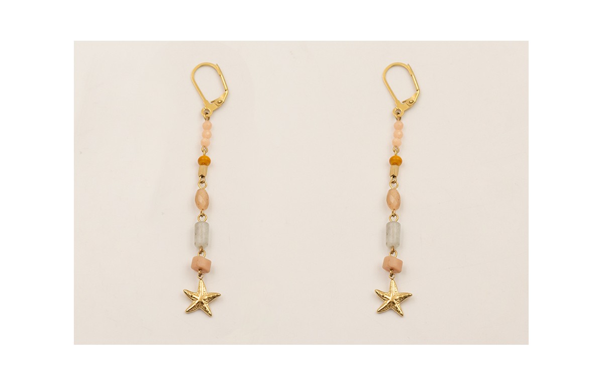 Pendientes ACERO INOXIDABLE semipreciosas engarzadas con colgante estrella de mar.