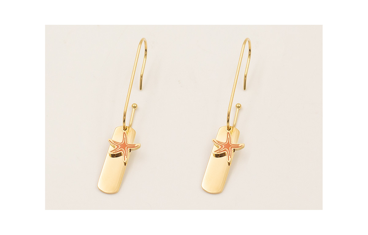 Pendientes ACERO INOXIDABLE gancho anzuelo con colgante chapa y estrella esmaltada coral.