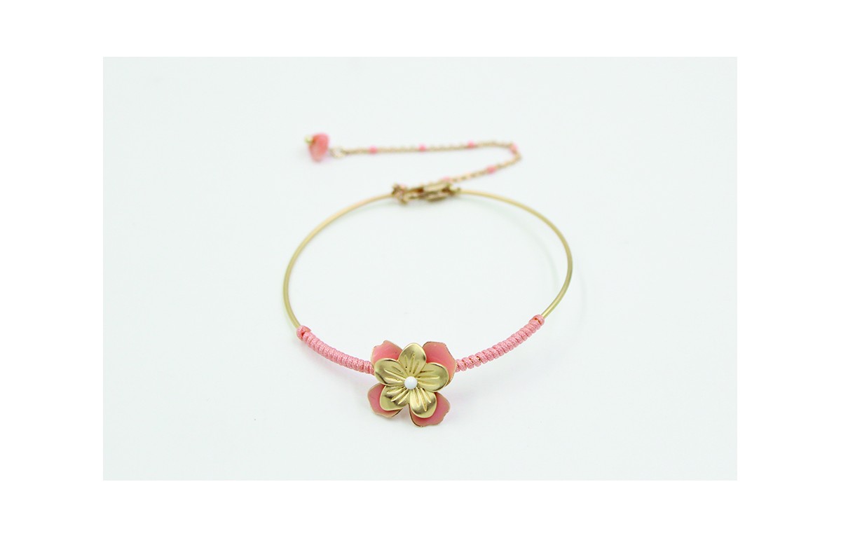 Pulsera rigida flor esmaltada rosa y alfiler bola