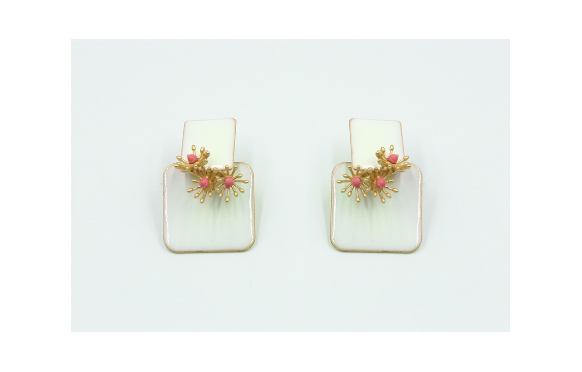 Pendientes rectamgulo esmaltado blanco con campanilla oro mate y blanco