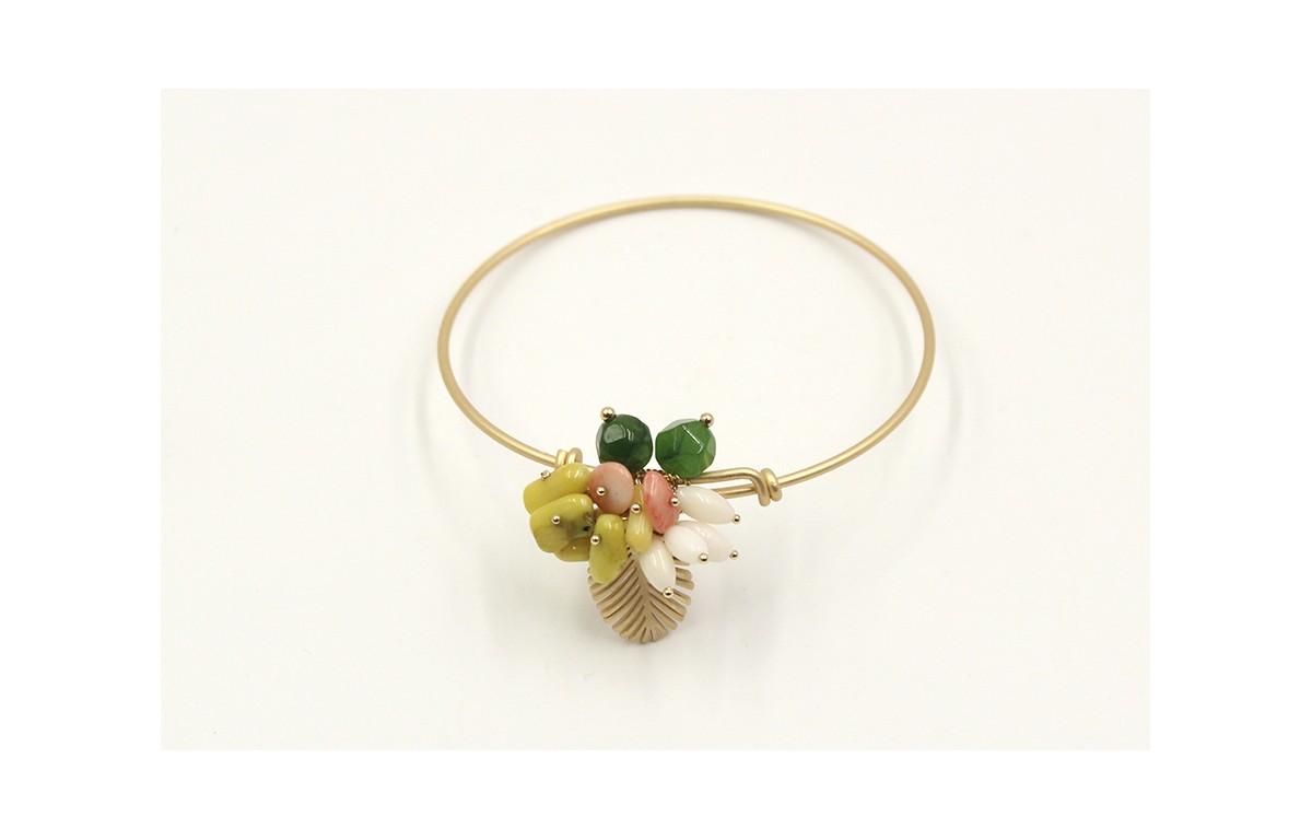 Pulsera rigida en oro mate con hoja de palmera y semipreciosas