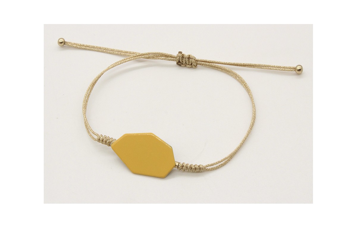 Pulsera nudo serpiente con pieza esmaltada color huevo. Es regulable.