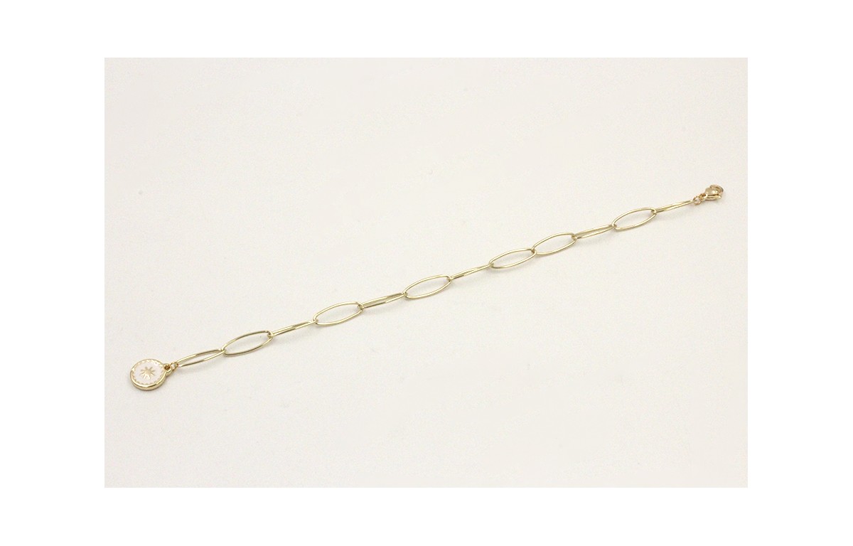 Pulsera cadena acero inoxidable eslabón grande ovalado con colgante estrella esmaltado blanco. Largo 17cm