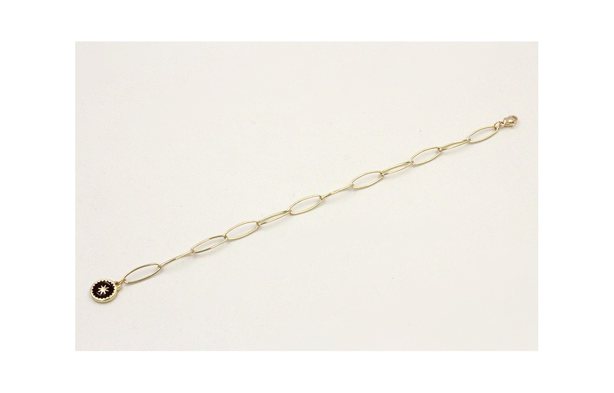 Pulsera cadena acero inoxidable eslabón grande ovalado con colgante estrella esmaltado marrón. Largo 17cm