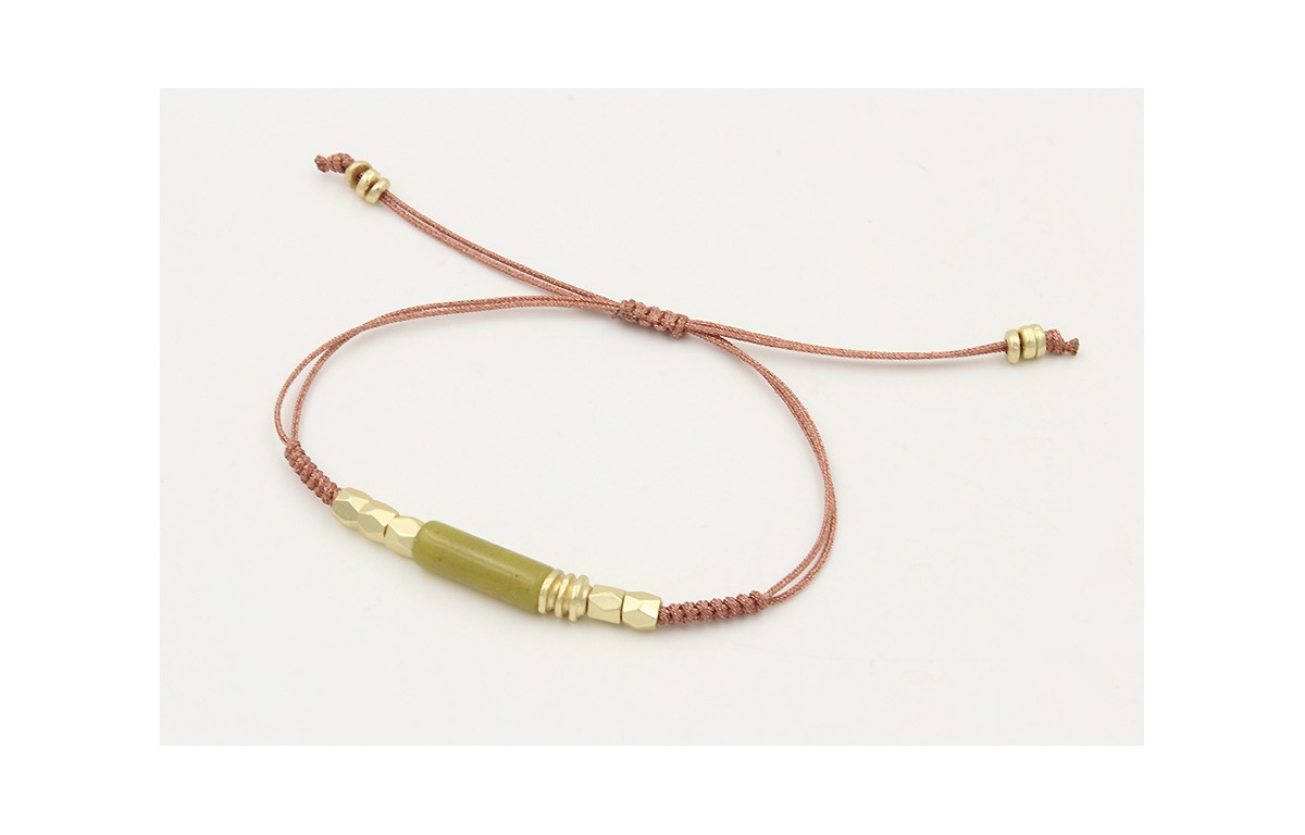 Pulsera nudo serpiente hilo oro rosa con facetadas y disco irregular dorado mate. Es regulable