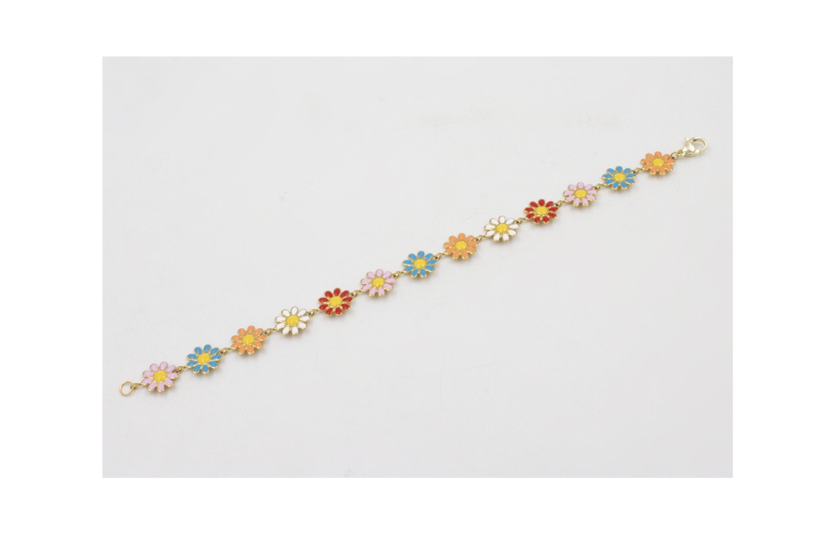 Pulsera acero inoxidable cadena de margaritas esmaltadas multicolores. Largo 17cm.