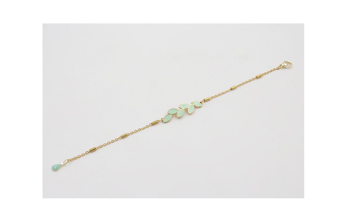 Pulsera acero inoxidable cadena eslabón con tubo con entrepieza pétalos esmaltada turquesas