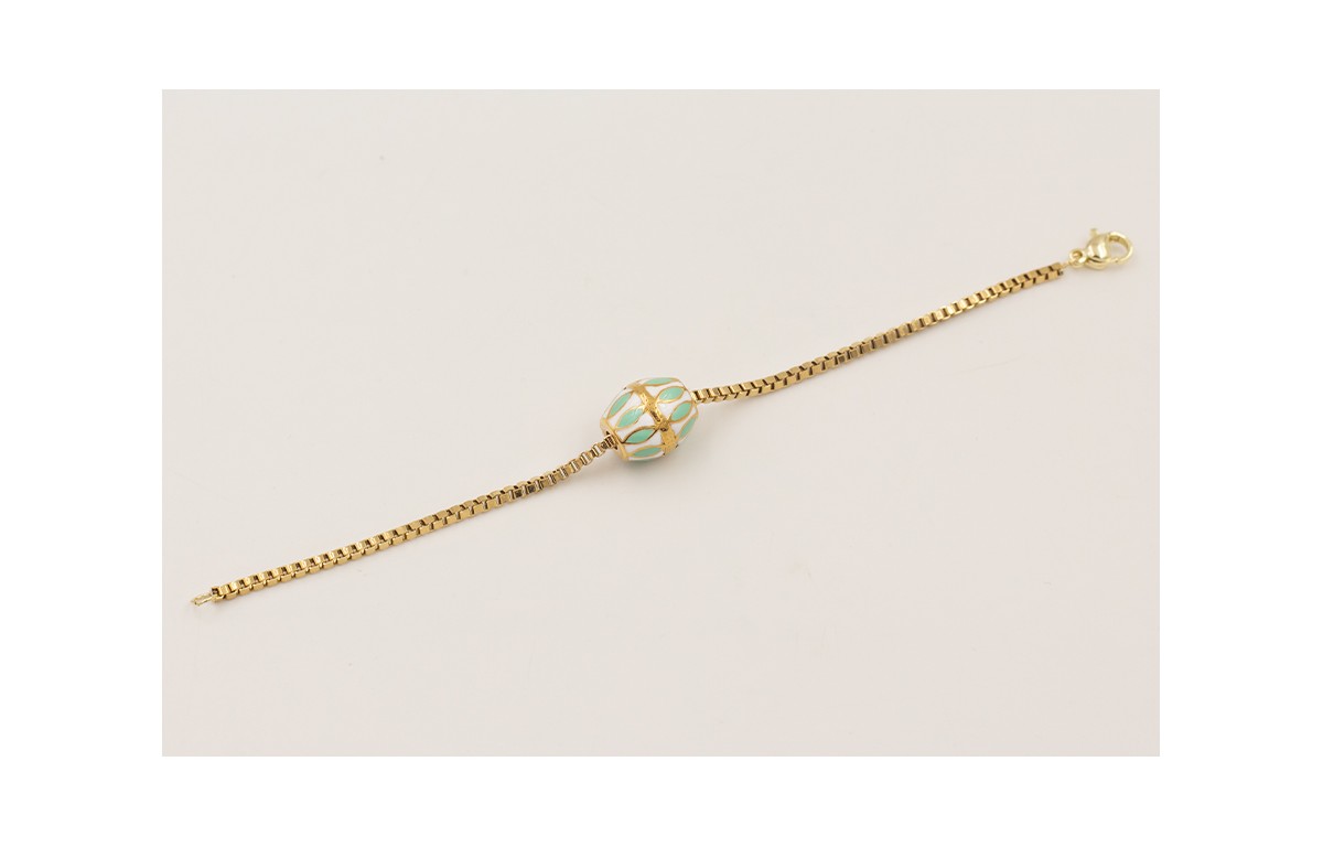 Pulsera cadena eslabón cuadrado acero inoxidable con barrilete esmaltado blanco y verde.