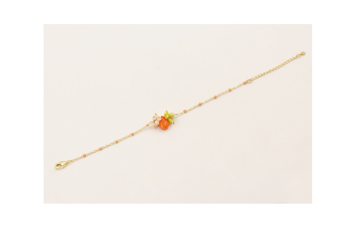 Pulsera cadena esmaltes ocre con gota naranja,burr