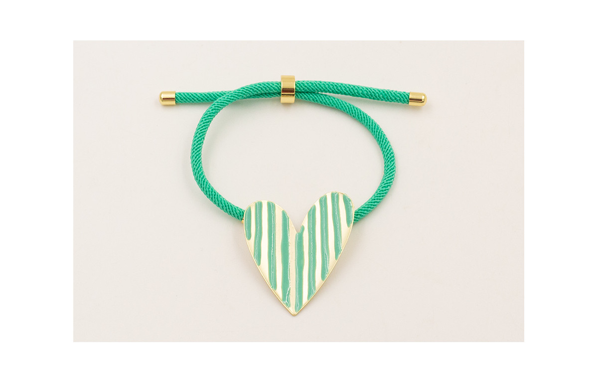 Pulsera cordón preparado color turquesa con corazón esmaltado lineas turquesas.